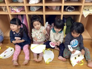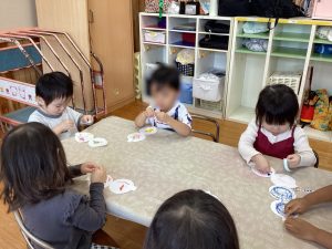 うさぎ組(2歳児クラス)では、ハロウィンの製作や、活動を行いました!