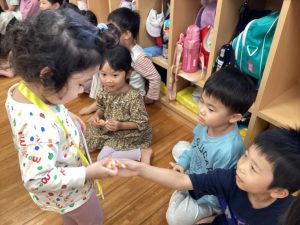 職場体験に来ていた中学生のお兄さん・お姉さんから手作りのキャンディ🍭をもらい、大満足✨
